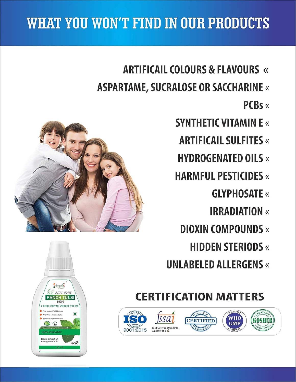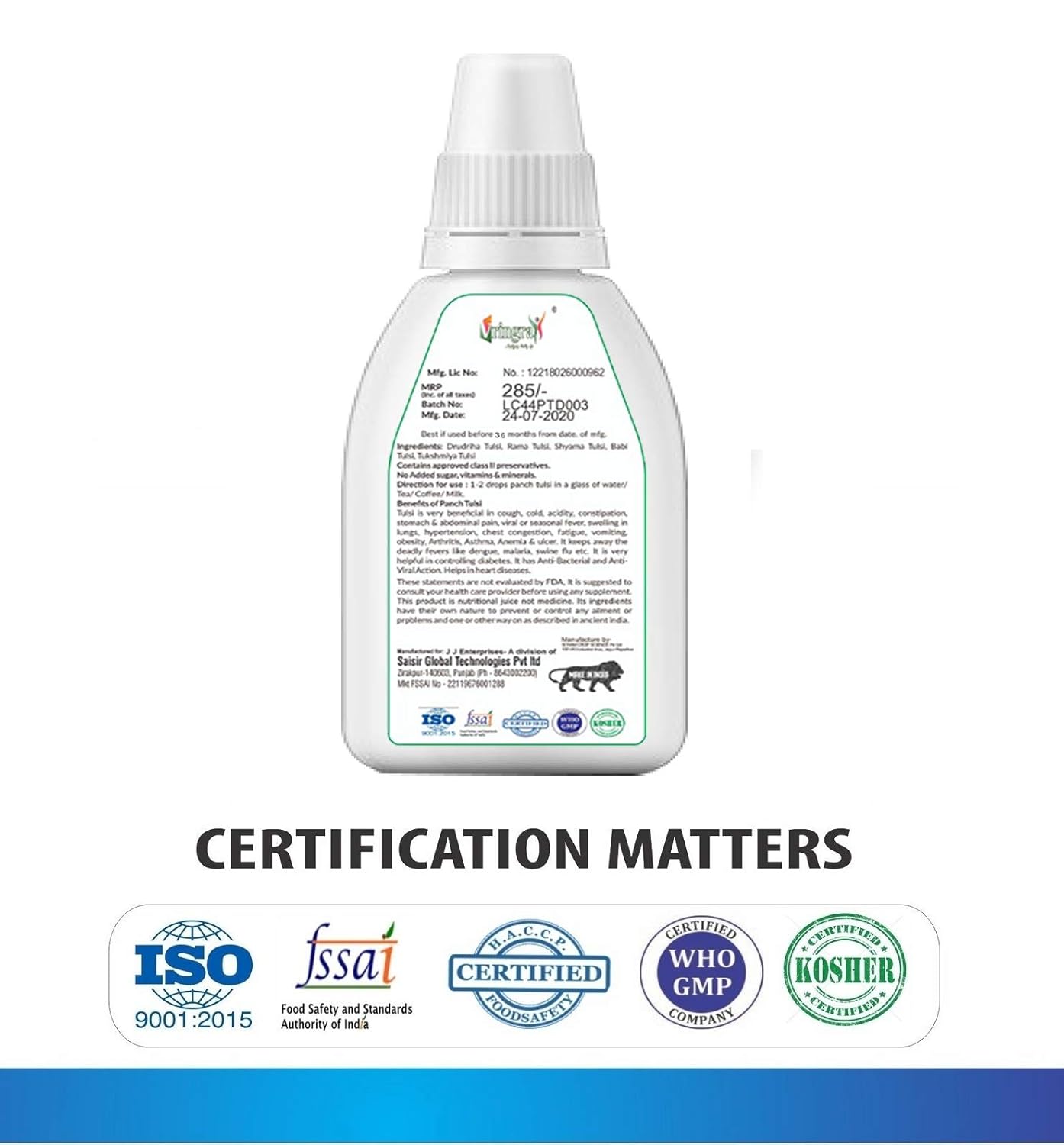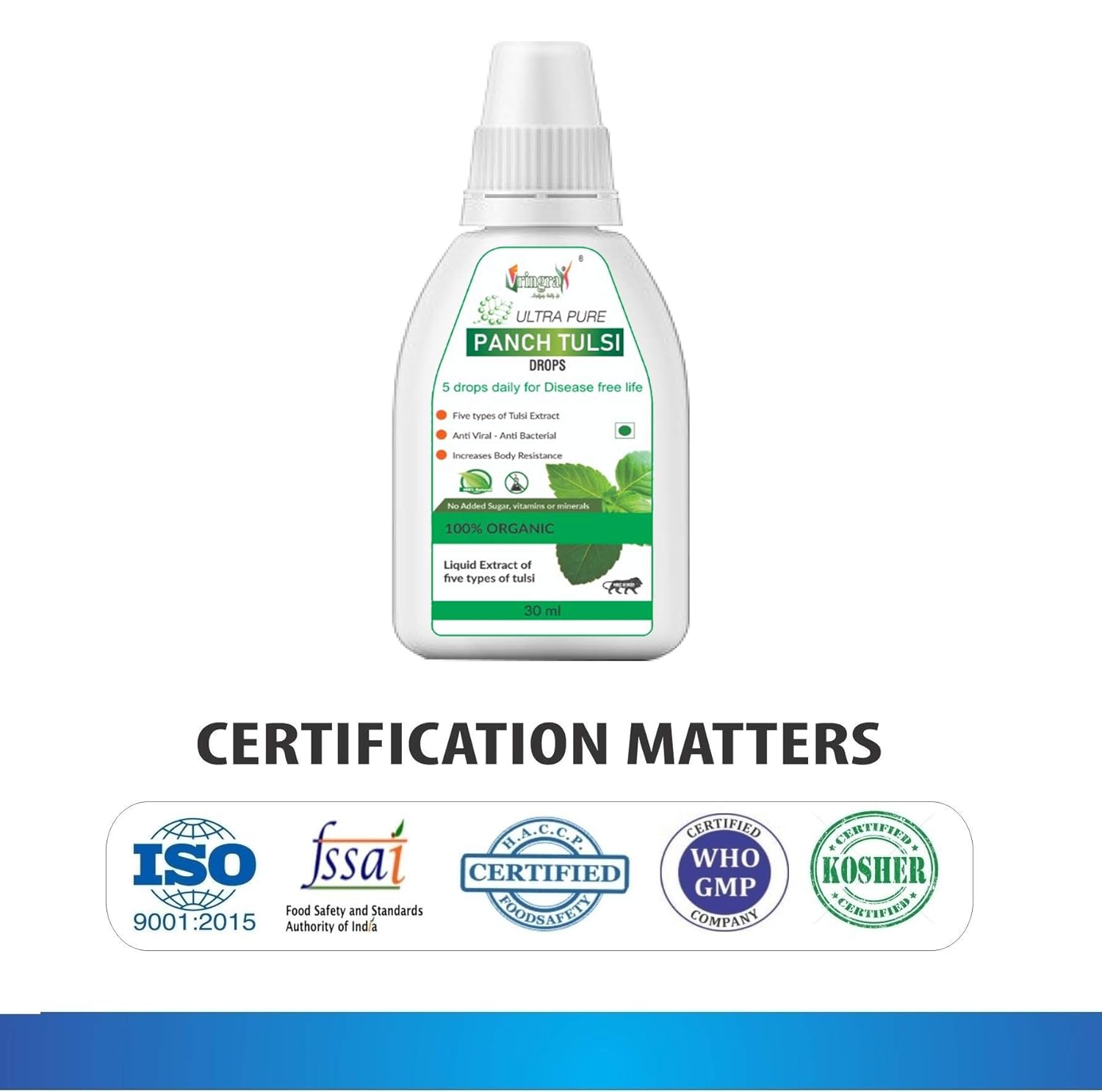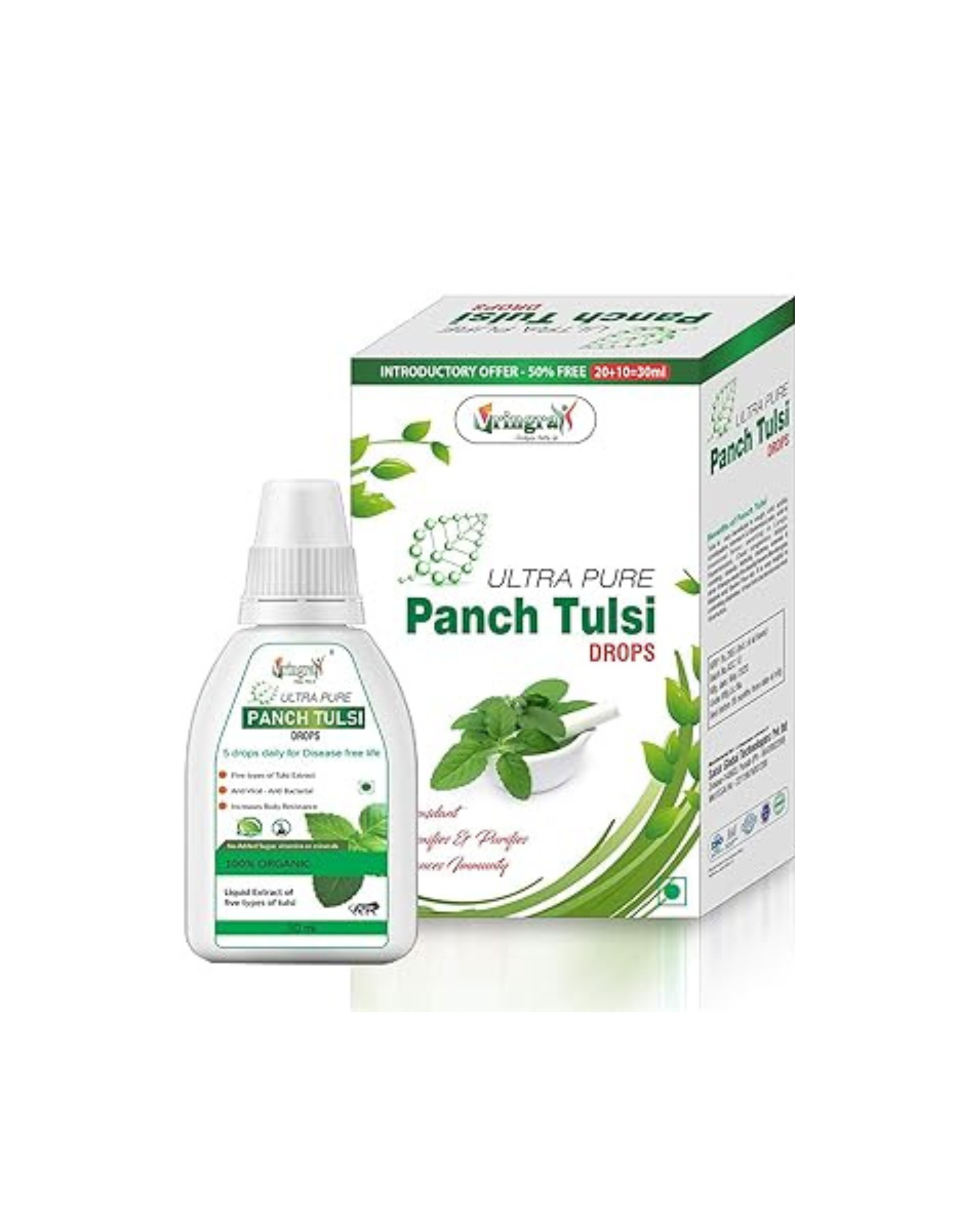 Vringra Panch Tulsi Drops is a premium liquid extract derived from the finest Tulsi leaves. Known as the “Queen of Herbs,” Tulsi has been used for centuries in Ayurveda to treat various ailments and maintain peak health. Our “Ultra Pure” formula ensures you get the most concentrated essence for maximum health benefits.