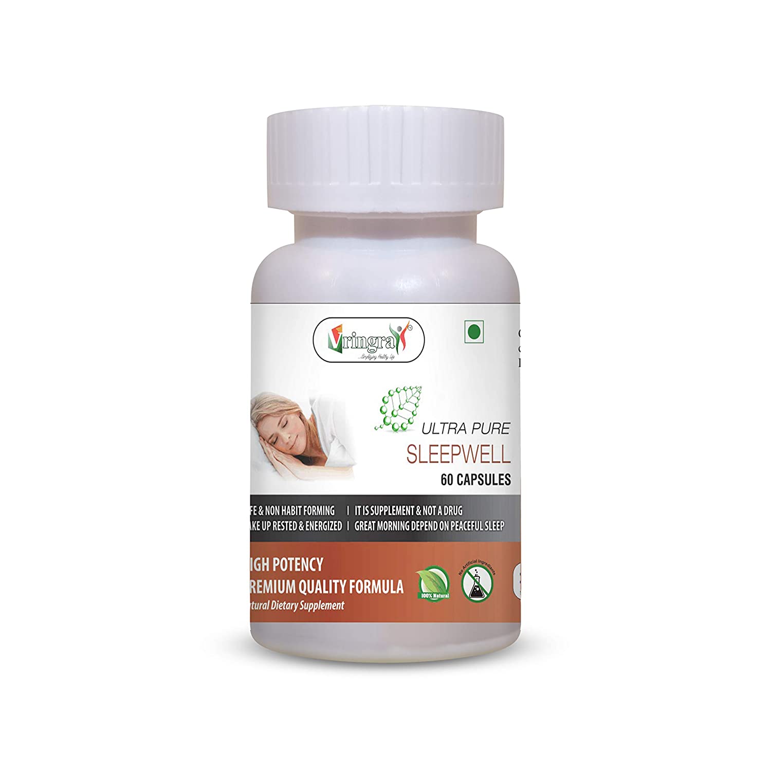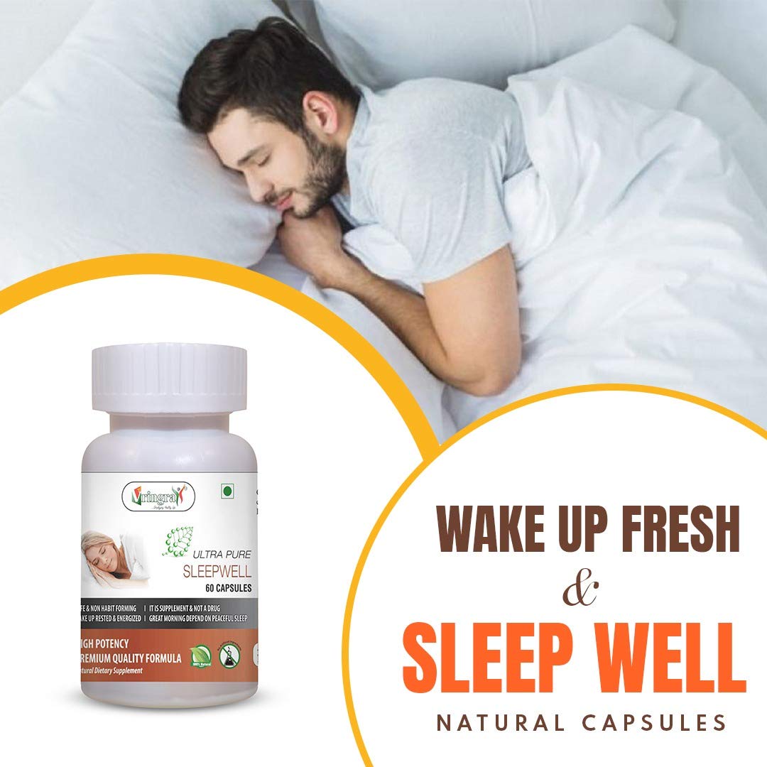 Meta Description: Experience restful sleep with Vringra Ultra Pure Sleepwell. 60 herbal capsules with Bacopa Monnieri to help you fall asleep naturally and wake up energized. 100% natural & non-habit forming.